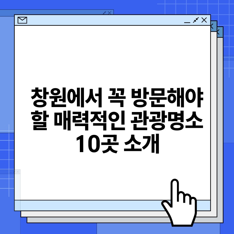 자료실 창원에서 꼭 방문해야 할 매력적인 관광명소 10곳 소개 2024년 11월 26일 창원 명소 탐방: 매력적인 10곳 추천 창원은 다양한 문화와 자연의 매력을 가진 도시로, 많은 관광명소가 있습니다. 이번 글에서는 창원에서 꼭 가봐야 할 명소 10곳을 소개하겠습니다. 가족과 함께, 친구와 함께하는 여행에 도움이 될 만한 정보들을 담았습니다. 1. 마산 아구찜 거리 마산 아구찜 거리는 창원의 대표적인 먹거리 명소입니다. 신선한 아구로 만든… Read More